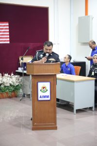 – TPPI Mohd Fadly @ Sany bin Mohd Yusof dari Bahagian Khidmat Pengurusan yang berkongsi berkaitan Standard Operating Procedure (SOP) Pemandu dan Pengguna Kenderaan Kerajaan di AIMM.